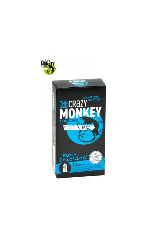 12 préservatifs transparents dotés de picots et de nervures, pour accroitre les sensations de votre partenaire, marque Crazy Monkey.