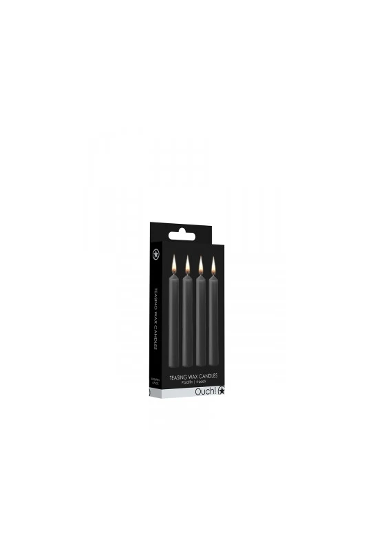 Kit de 4 Bougies Basse Température noires Teasing Wax Candles (12 x 1,7 cm), par le spécialiste du BDSM Ouch!