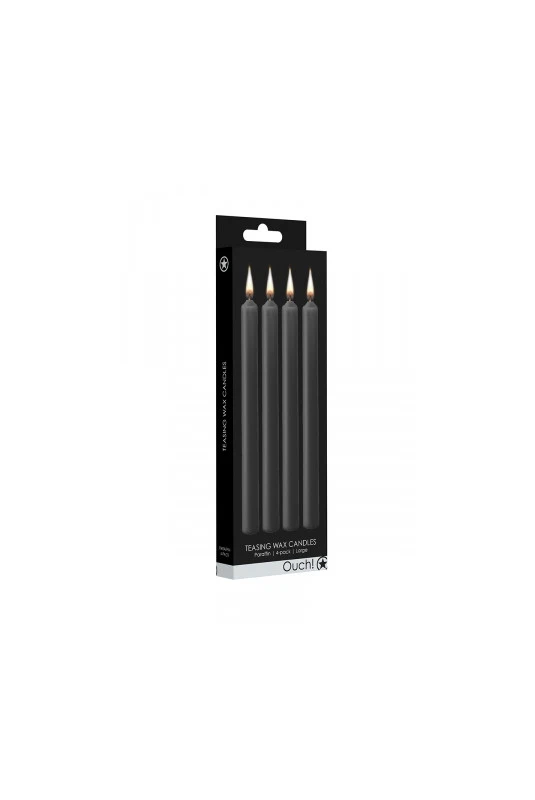 Kit de 4 Bougies Basse Température noires Teasing Wax Candles Large (18 x 1,8 cm), par le spécialiste du BDSM Ouch!