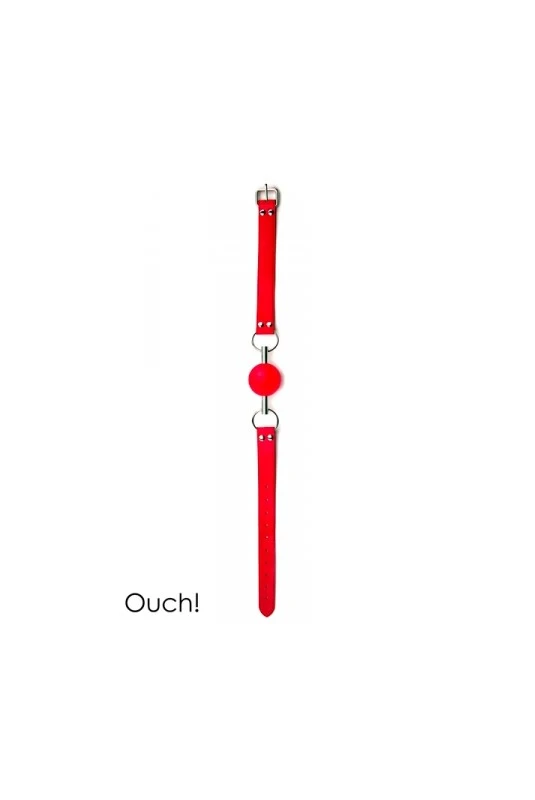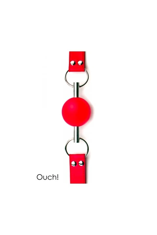 Bâillon boule de grande qualité et original avec sa balle en caoutchouc traversée par une tige en métal.