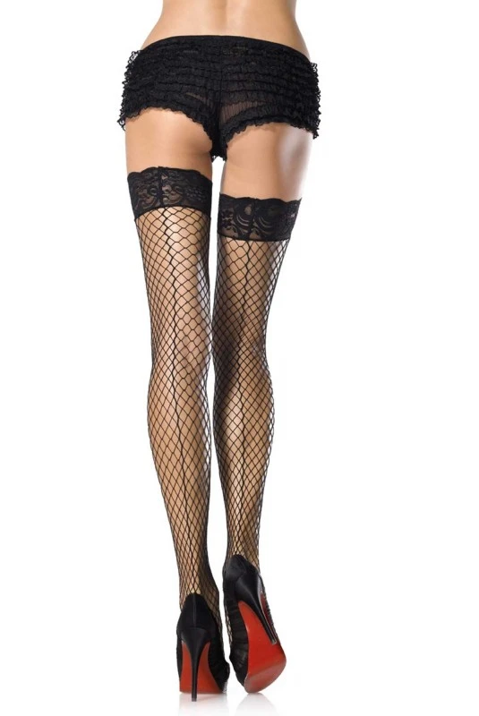 Bas filet moyen – Jarretières en dentelle florale. Bas autofixants