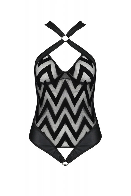 Body string noir en tulle et faux cuir, par Passion Lingerie.