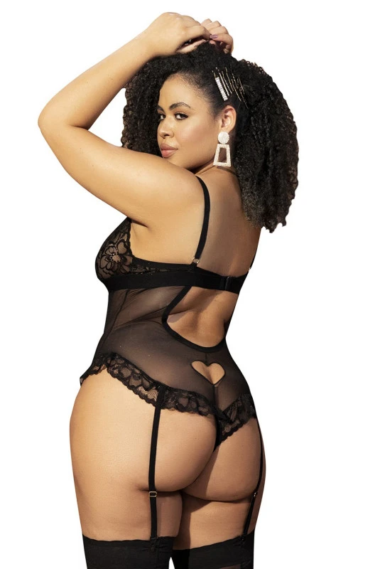 Body Style Guepière Noir en Dentelle et Résille à Porte Jarretelles