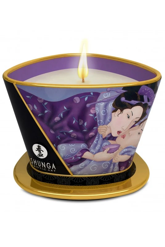 Éteignez la flamme avant de verser l’huile dans la paume de la main. Appliquez sur tout le corps pour un massage sensuel.