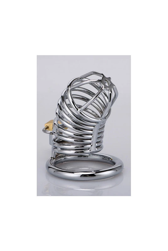 Cage de chasteté de haute qualité en métal chromé, avec véritable serrure et cadenas, longueur 7 cm, poids 125g.