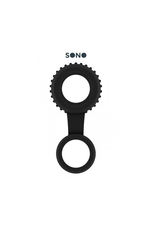Cockring super extensible en soft TPE, avec séparateur de bourses, pour serrer la verge et les testicules, par SONO.