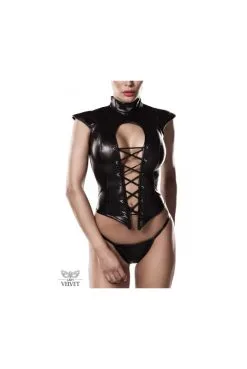Corsage sexy BDSM faux cuir mat lacé devant et derrière, avec effet gainant.