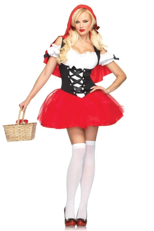 La cape avec capuche est accrochée à cette jolie robe tutu paysanne, avec laçage façon de corset sur le buste.