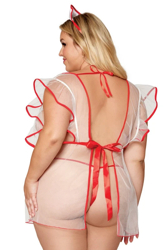 Costume Transparent Infirmière Sexy Grande Taille Nuisette Nipples Coiffe et String