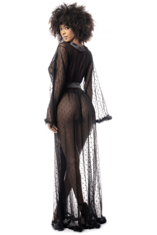 Déshabillé Long Sexy Chic Fine Résille Noire Transparente