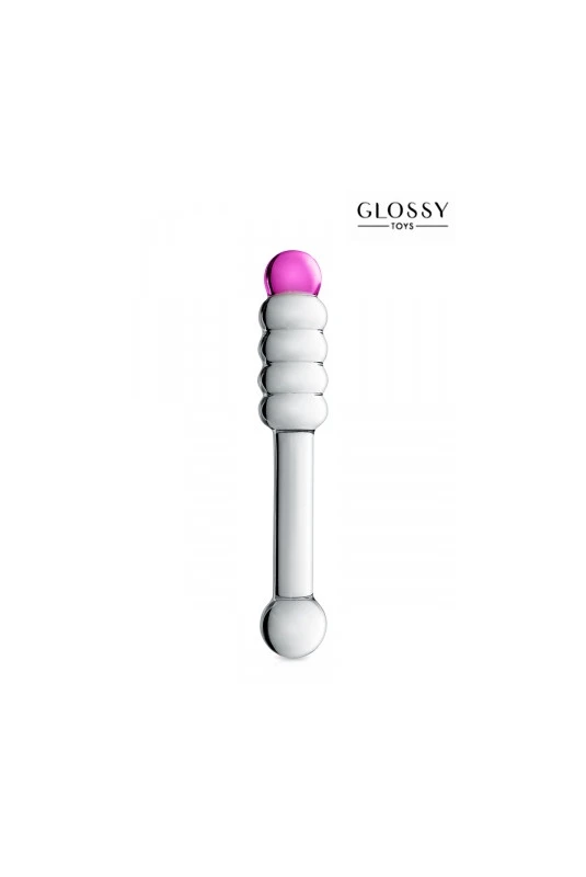 Luxueux dildo en verre incassable translucide, utilisable par les deux extrémités pour varier les plaisirs.