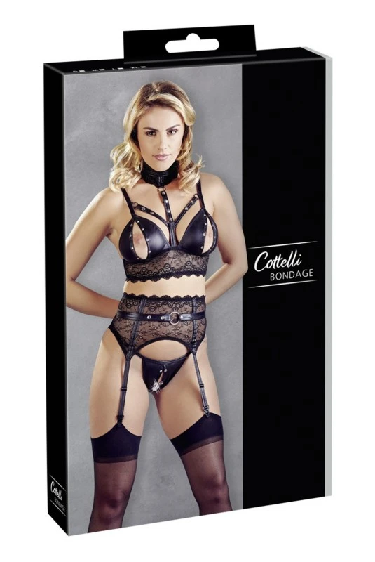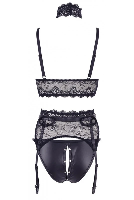 Ensemble Fetish Ouverts WetlLook et Dentelle 3 Pièces