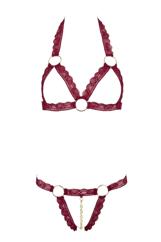 Ensemble Ouvert Fetish Anneaux Chainettes Rouge Strappy