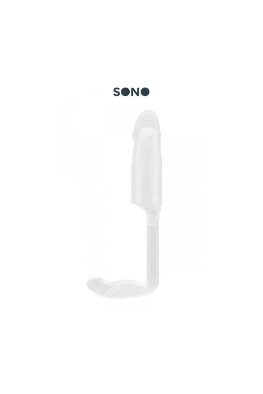 Agrandissez la taille de votre pénis tout en profitant d’une stimulation anale avec la gaine d’extension de pénis translucide SONO n°38.