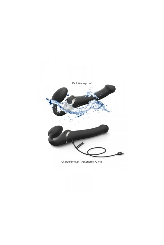 Nouvelle édition du gode-ceinture anatomique Strap-On-Me vibrant, doté d’une langue vibrante pour le clitoris. Noir, taille XL.