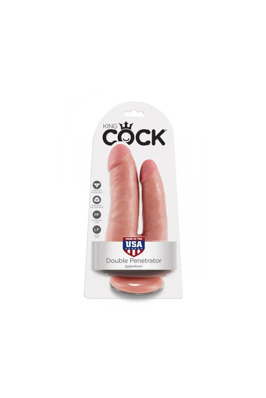 Double gode réaliste spécial double pénétration, avec texture RealDeal pour un réalisme maximum et une puissante ventouse.