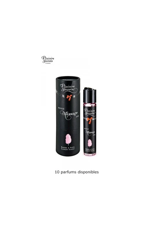 Huile de massage comestible avec 10 gouts exquis, par Plaisirs Secrets.