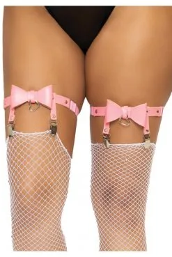 Jarretières Noeud Cuir Vegetalien Rose