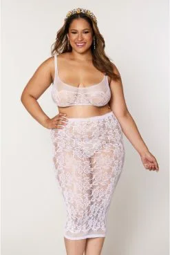 Ensemble Grande Taille Sexy Dentelle Brassière Résille Dentelle Jupe Longue Assortie