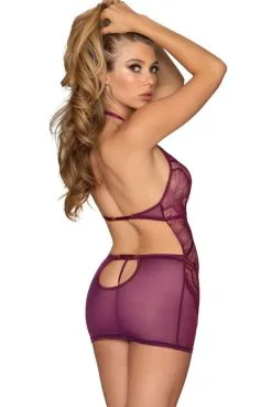 Nuisette Violette Ouverte Sur Les Seins Nuit Epaules Et Dos Nus Et String Assorti