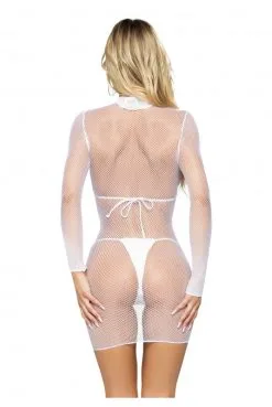 Mini Robe Coquine Manches Longues Résille Et Filet