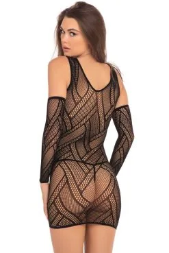 Robe Lingerie Longue Résille Dos Nu Effet Lacets