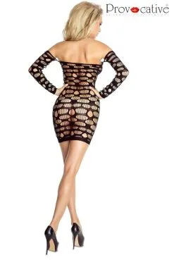Robe Lingerie Longue Résille Ajourée Effet Lacée Noir