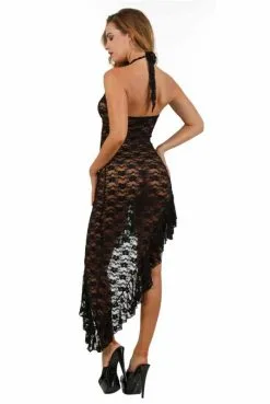 Robe Longue Sexy Dentelle Noire Transparente Et Fine Résille