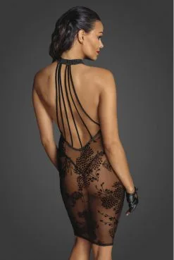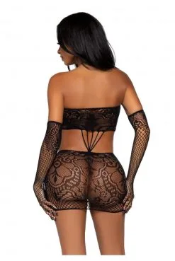 Robe Tube Sexy Noire Et Gants Dentelle Résille
