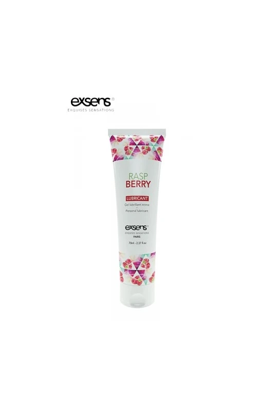 Gel lubrifiant intime à base d’eau aromatisé à la framboise, par Exsens.
