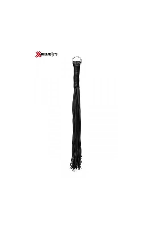 Martinet à 42 lanières, 60 cm de long, en PVC avec poignée en métal renforcé et gainée de cuir.