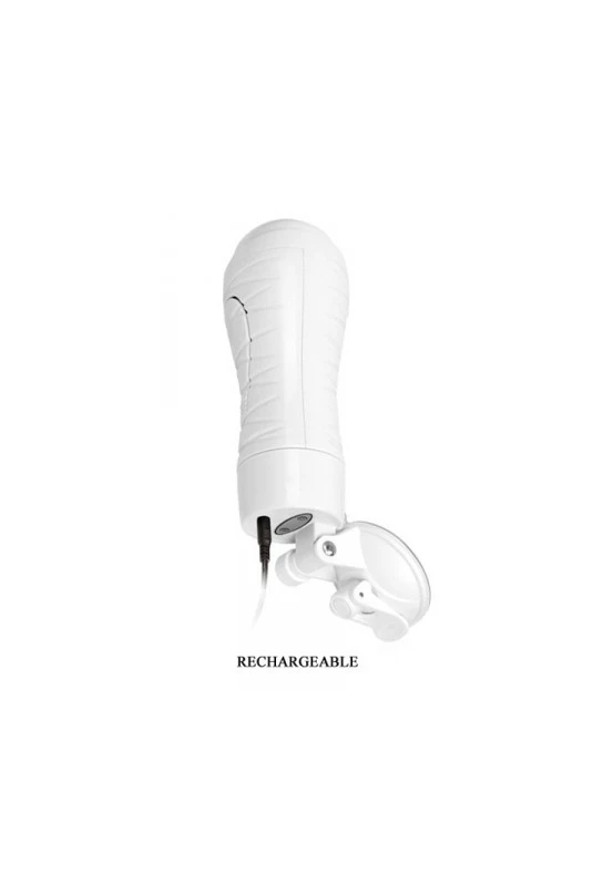 Masturbateur masculin vibrant ultra réaliste, sensible à la pression pour varier les sensations, avec orifice bouche, support ventousé et orientable.