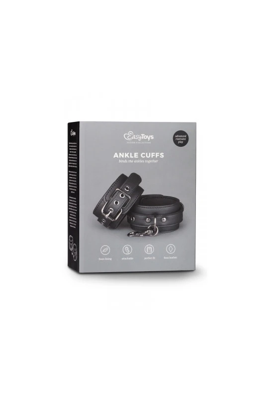 Menottes de bondage pour chevilles, réglables, en simili cuir, doublées de mousse pour un confort maximal.