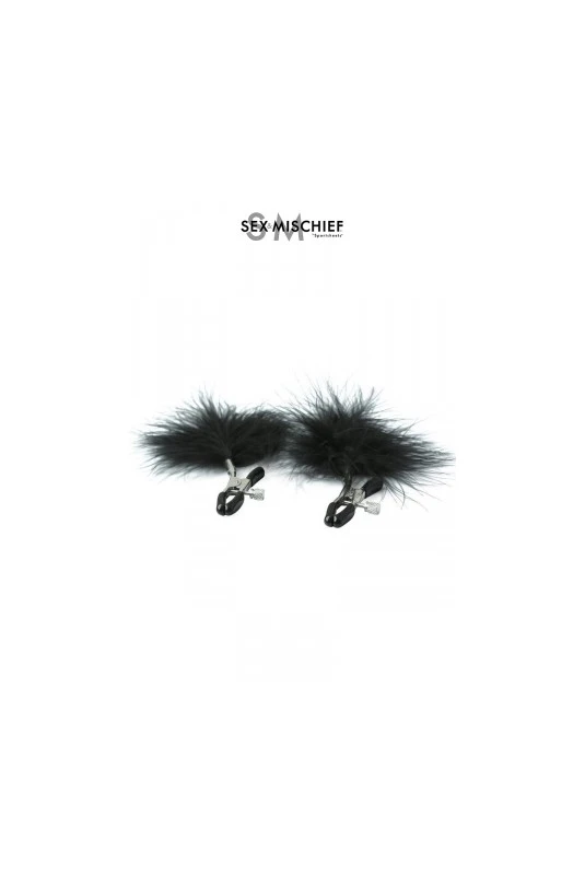 Pinces à seins réglables avec des plumes noires décoratives.