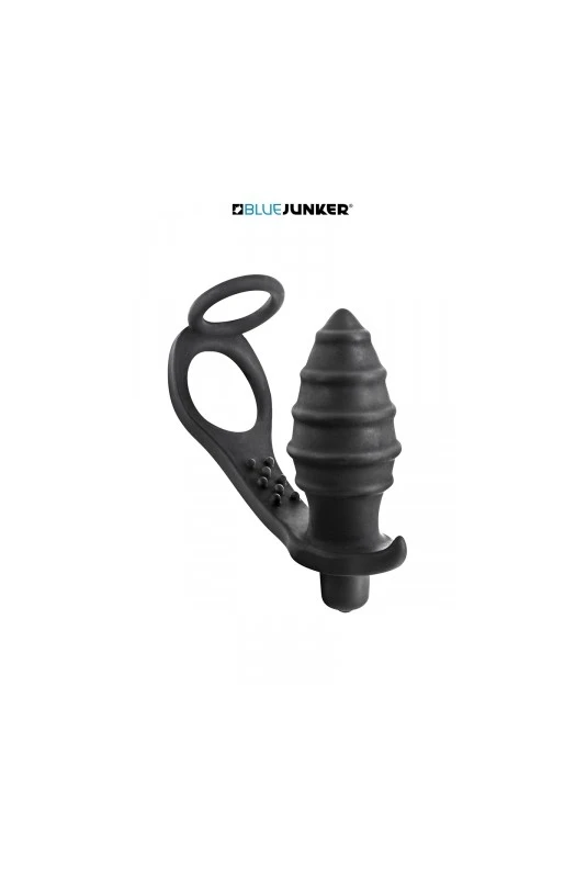 Plug anal vibrant annelé relié à un double cockring pour toujours plus de plaisir.
