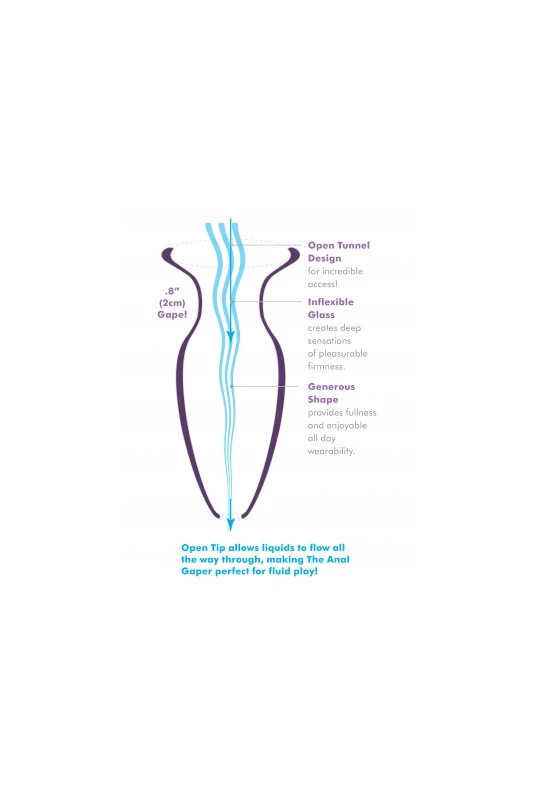 Plug creux Premium en verre de borosilicate transparent, dimensions externes 12,4 x 5,3 cm maxi.