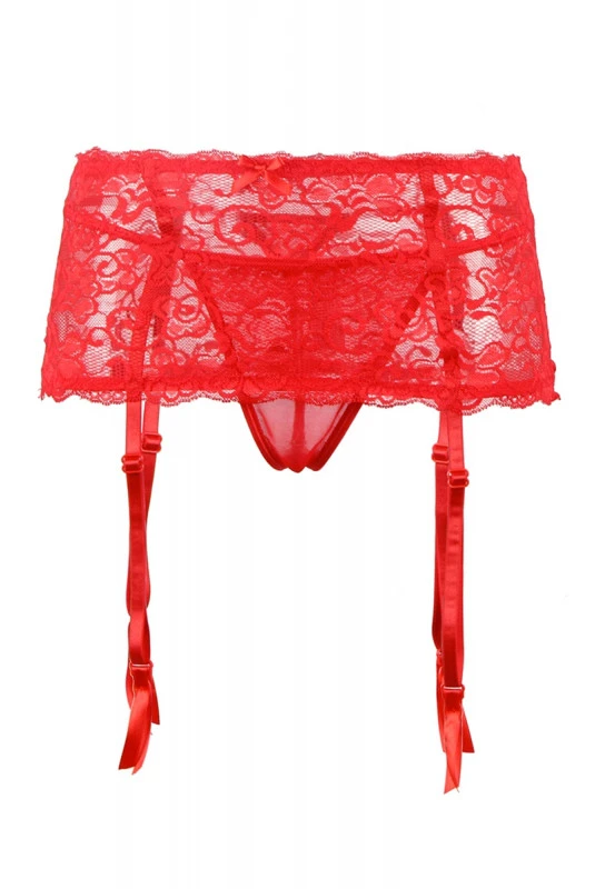 Portes jarretelles en dentelle rouge doté d’une large ceinture qui met en valeur la silhouette.