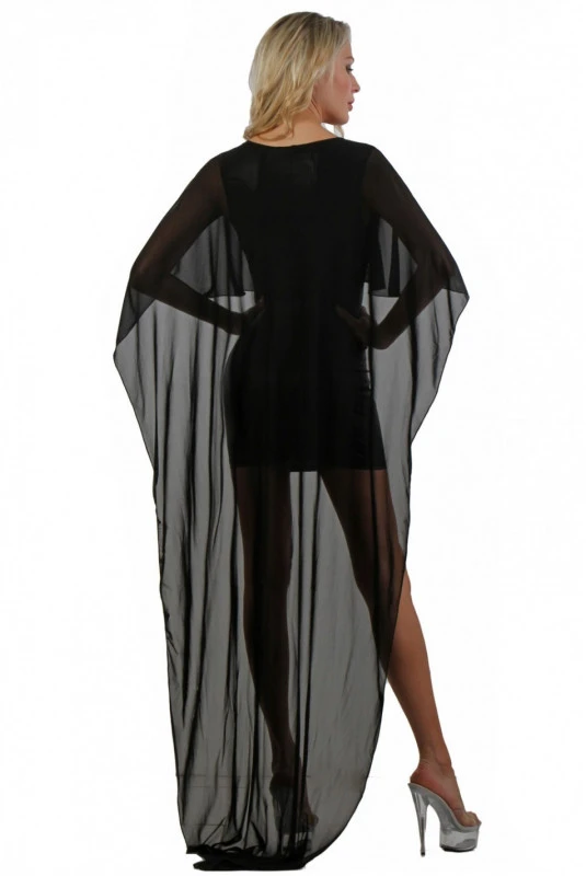 Robe Courte Wetlook Dos Cape Micro Résille Noir