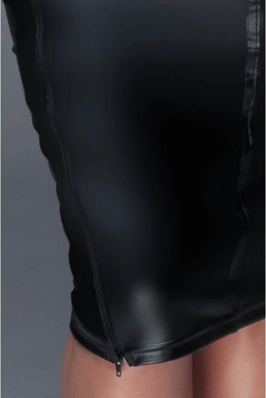 Robe moulante en wet look au col collier choker avec zip asymétrique sur la cuisse