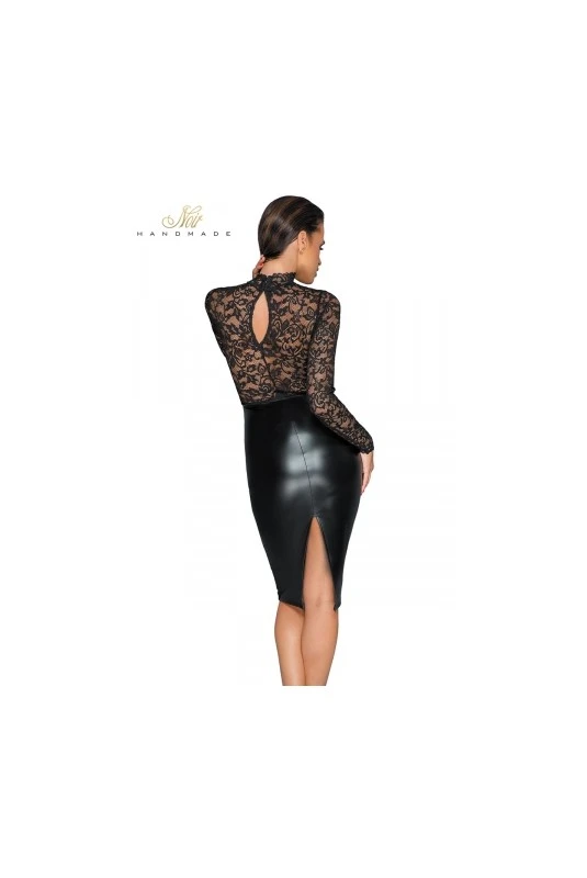 Robe moulante longue aux genoux à la belle coupe cintrée, en wetlook mat et dentelle.
