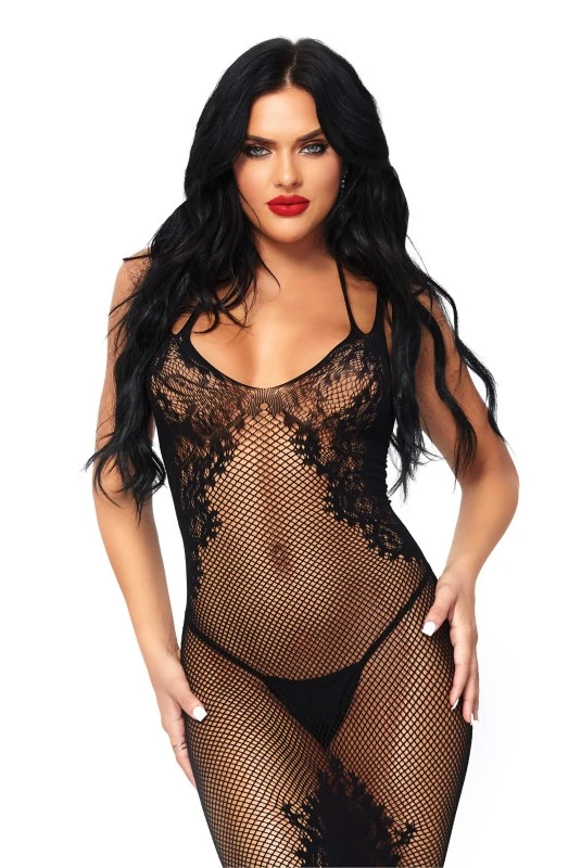 Robe Lingerie Longue Résille Dentelle Dos Croisé