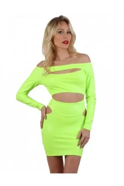 Robe Sexy Courte Ajourée Wetlook Jaune Fluo