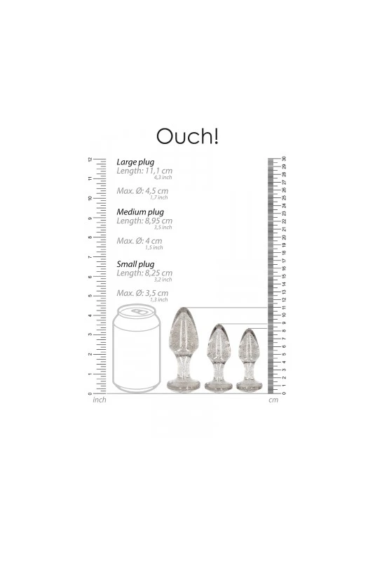 3 plugs anaux argentés élégants imaginés par Ouch! pour initier votre partenaire au sexe anal lors vos soirées libertines ou SM.