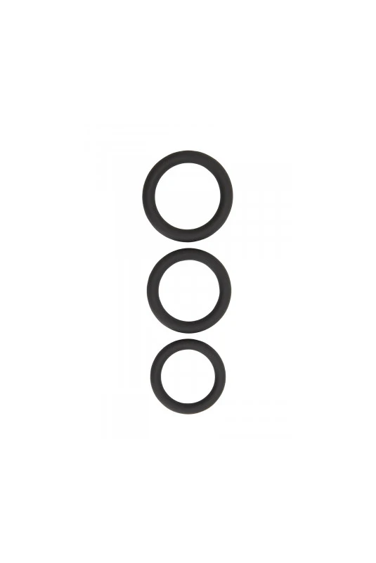3 anneaux de pénis en silicone de diamètres différents, pour serrer la verge et/ou les testicules.
