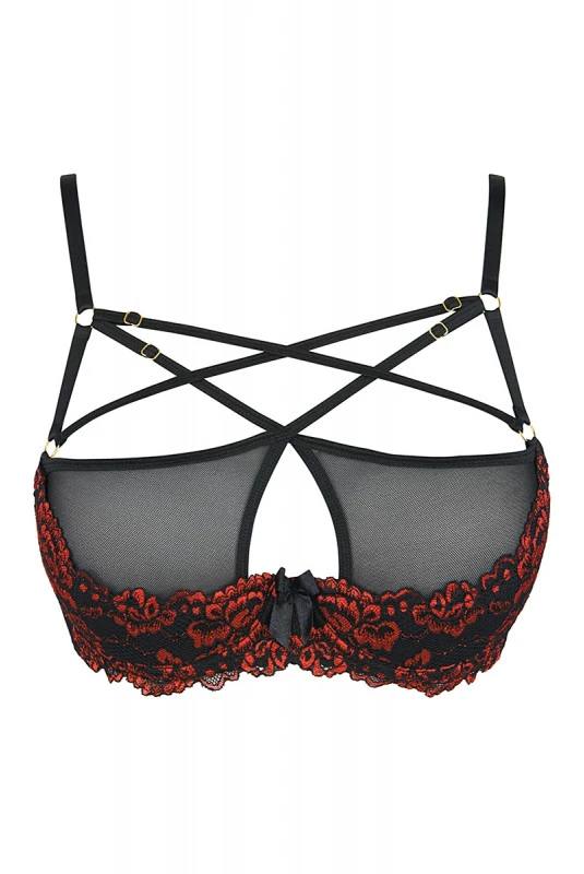 Soutien Gorge Strappy Croisé Dentelle Noir et Rouge