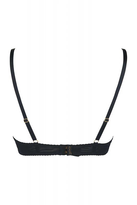 Soutien-gorge au style fantaisie, balconnet en dentelle et bonnets ajustables grâce à leurs sangles réglables.