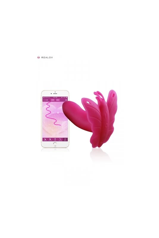 Stimulateur féminin connecté en forme de papillon pour stimuler le clitoris et le vagin à distance en toute discrétion, par Realove.