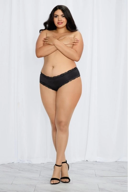 Tanga Grande Taille Noir Fesses Ajourées en Croisillons