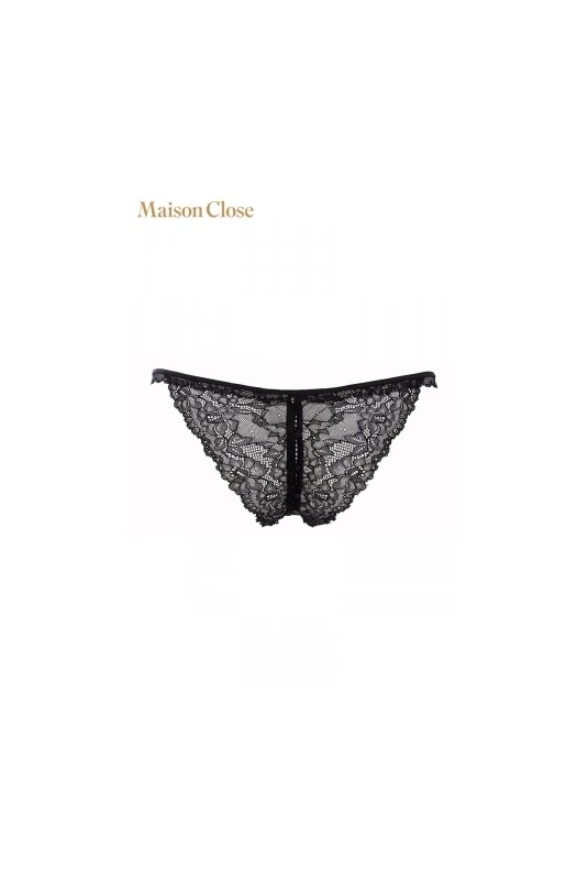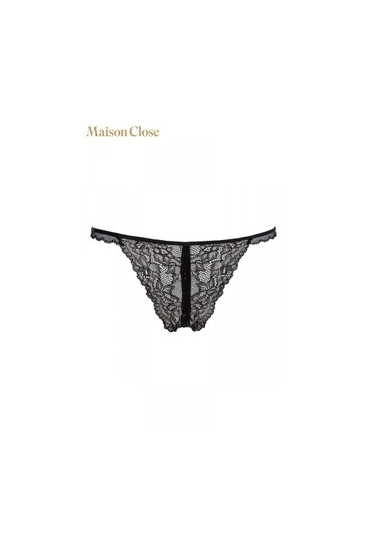 Tanga en dentelle totalement fendu, signé Maison Close.