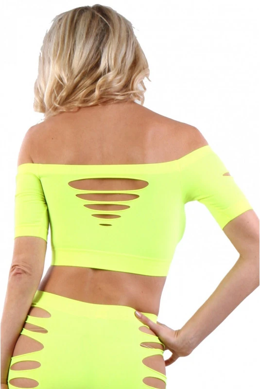 Top Jaune Court Moulant Ajouré
